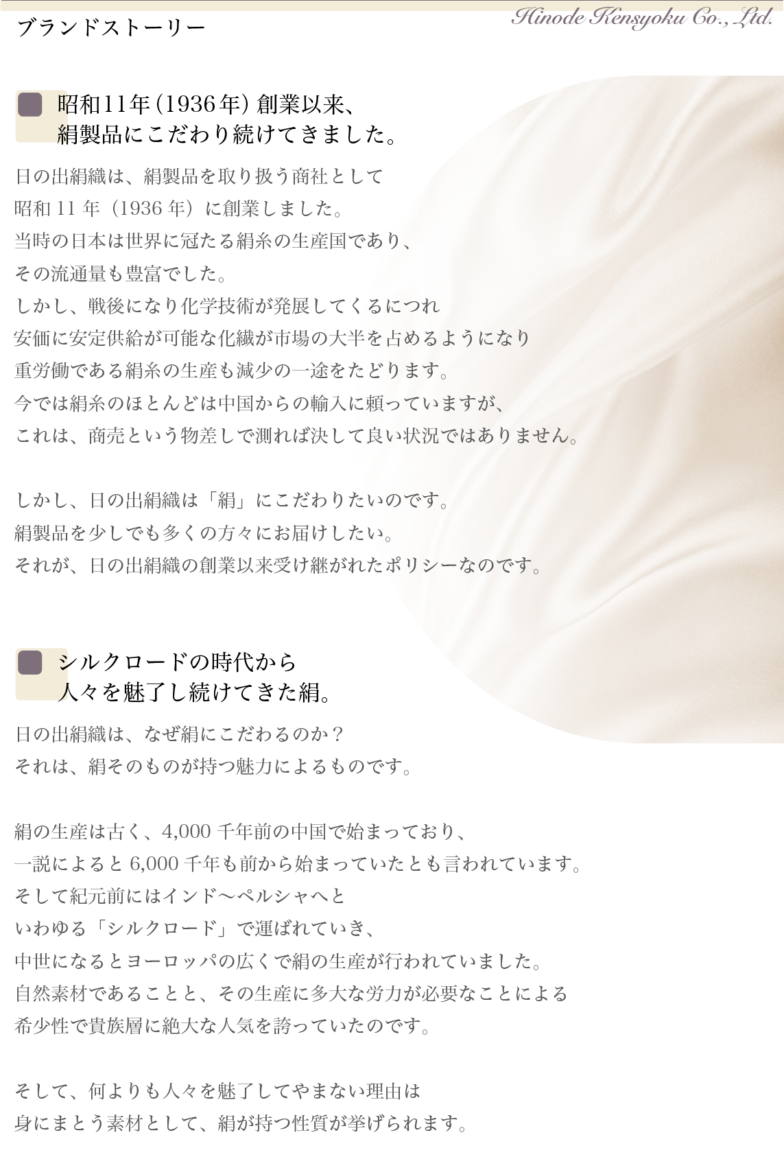 名義:日の出絹織株式会社(ヒノデケンショクカブシキガイシャ)